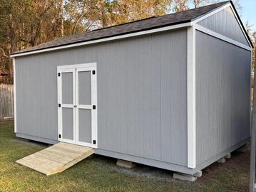 Built in Conroe, Texas (77306), this is a perfect shed to store your Christmas decorations! This comes with double barn doors, (1) 24x36 window, ramp, ridge vent, and your choice of paint color. Comes with a 5-year workmanship warranty.